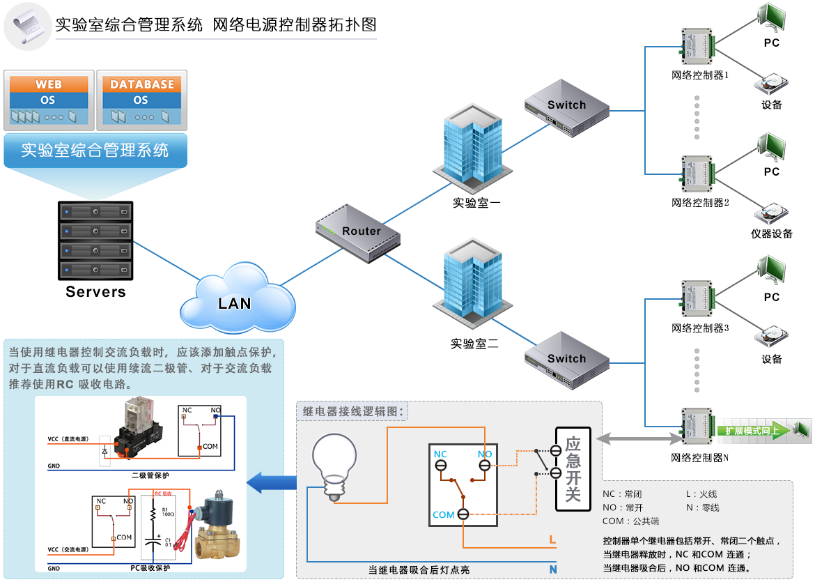 智慧实验室远程电控管理系统通过网络远程控制技术实现对实验室仪器设备的电源开启和关闭控制,系统自动对被安排或被预约的仪器设备供电或断电。它针对需要电源的实验设备(大型、贵重仪器设备)设计开发的远程电源集中管理解决方案,在学生完成实验预约,刷卡后实验设备才能供电,实验完成后刷卡断电。对实验设备进行精细化管理,自动记录使用时间并实验自动门禁系统、视频监控构成实时联动平台,提升实验室的智能化无人管理,减少工作量。